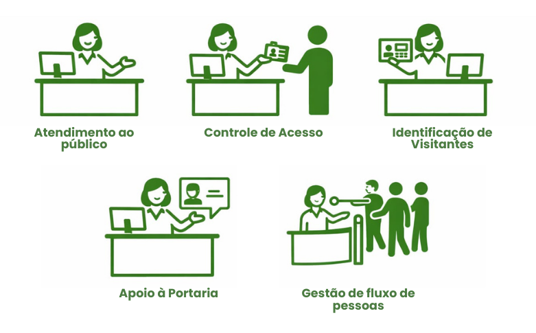 Nosso serviço de recepção é indispensável para o controle de acesso e identificação de visitantes, mantendo a boa imagem do seu condomínio ou empresa.